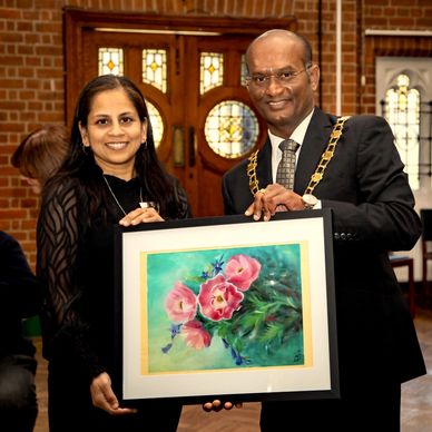 As a therapy pet, Leo was part of an intergenerational well-being project, helping participants feel more grounded and calm during sessions, and receiving accolades from Deputy Civic Mayor Cllr. Appu Shrinivasan at the exhibition.